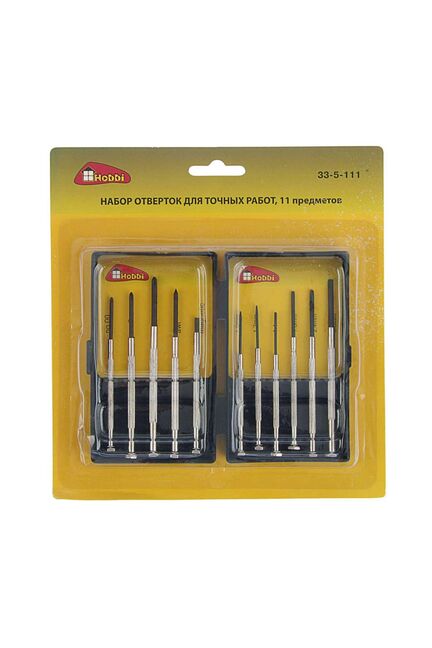Набор часовых отвёрток, 11 предметов Hobbi для ремонта часовой техники. В наборе находится 11 предметов: все необходимые насадки для работы с мелкими механизмами. 11 прочных отверток для точных работ с мелкими деталями: ремонт часов, электроники, очков. Удобная упаковка, отличное качество стали.