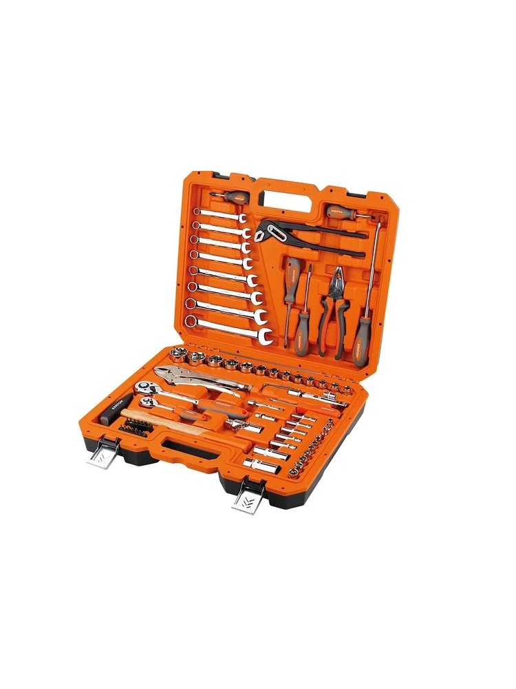 Практичный и универсальный набор инструментов подходит для ремонта, монтажа и технического обслуживания автомобилей, бытовой техники и оборудования. Полный комплект из 72 предметов позволит всегда иметь под рукой нужный инструмент.