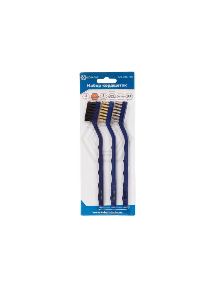 Набор кордщеток КОБАЛЬТ 180 мм (3 шт.), пластмассовая ручка