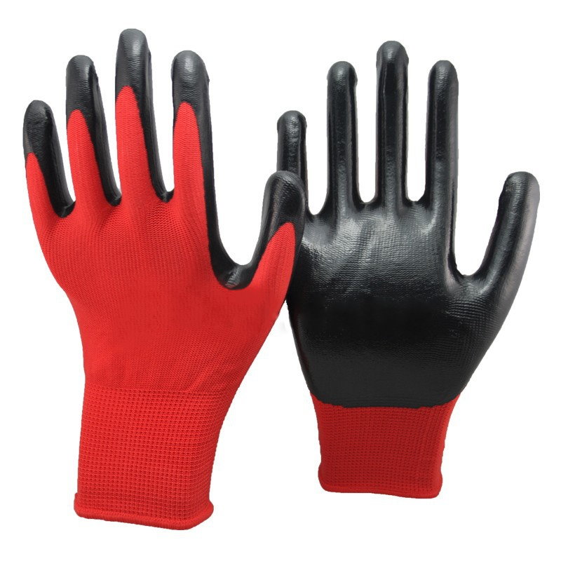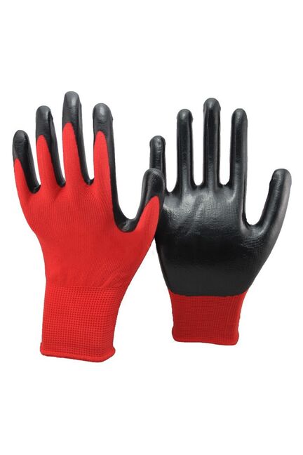 Износостойкие нейлоновые перчатки с нитриловым покрытием для надежной защиты рук при строительстве, ремонте и механосборочных работах.