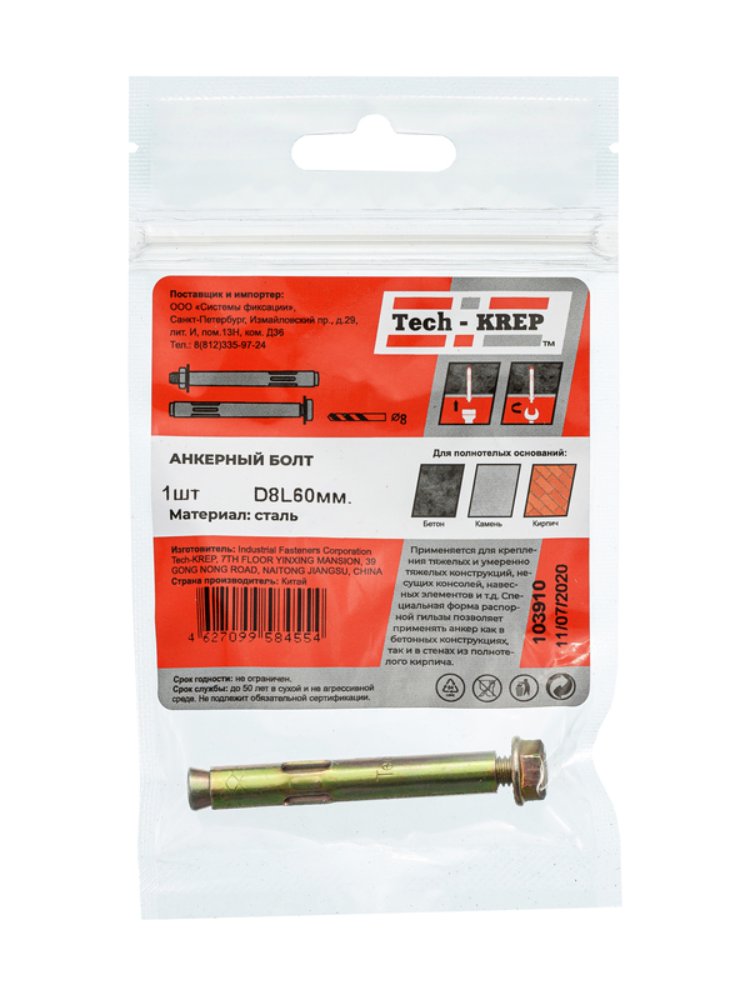 Анкерный болт 8х60 мм от Tech-Krep представляет собой надежный крепежный элемент, предназначенный для фиксации конструкций в бетон, кирпич или камень. Изготовлен из высокопрочной стали с антикоррозийным покрытием, что обеспечивает долговечность и устойчивость к внешним воздействиям. Размер 8х60 мм идеально подходит для средних нагрузок, а конструкция с распорной втулкой гарантирует прочное и безопасное соединение. Упаковка содержит 1 штуку, что удобно для точечного использования. Продукт прост в установке и не требует специальных навыков для монтажа.