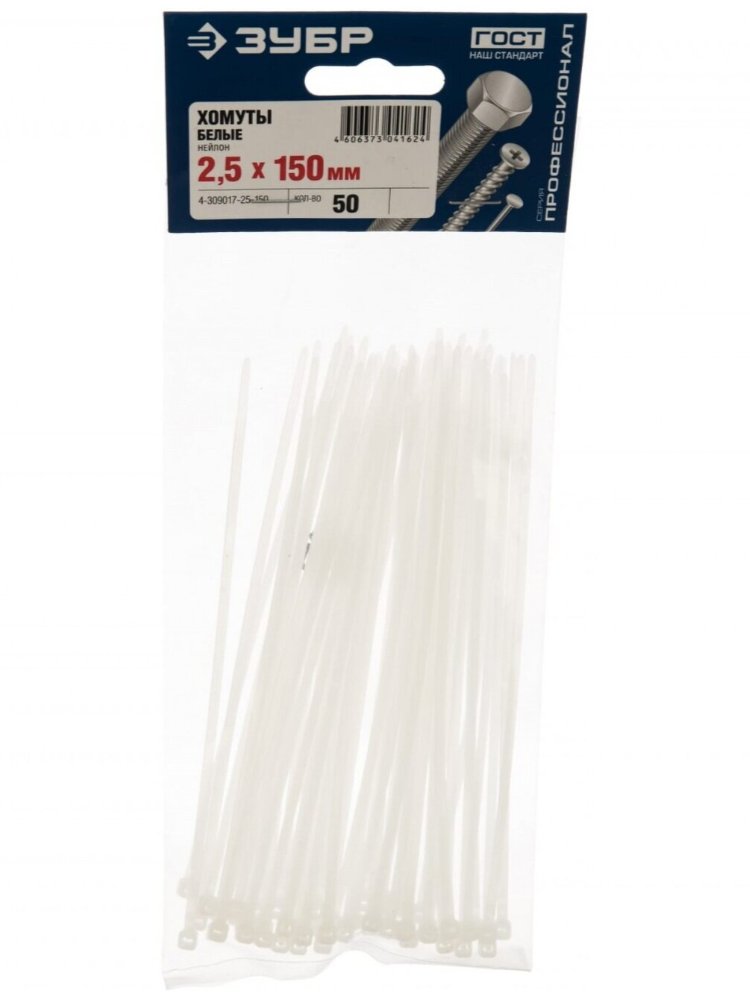 Надежное крепление для электрики, сантехники и любых монтажных работ — гарантия аккуратности и прочности соединений. Белые нейлоновые хомуты ЗУБР (размер 2,5x150 мм, упаковка 50 шт., арт. 4-309017-25-150) устойчивы к воздействию влаги, масел и случайных перепадов температуры, обеспечивают быстрый и безопасный монтаж без инструментов.