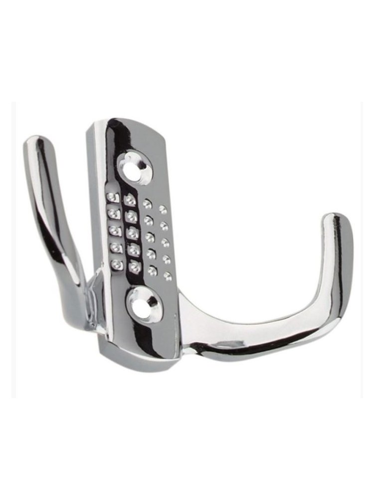 Хромированный 2-рожковый крючок, утончённый дизайн, антикоррозийная защита, простой монтаж, выдерживает ежедневную нагрузку.