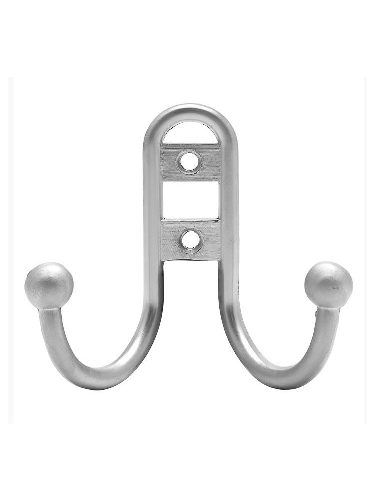 Двухрожковый крючок из металла с покрытием под серебро, компактен, легко крепится, подходит для дома, офиса и ванной, выдерживает высокую нагрузку.
