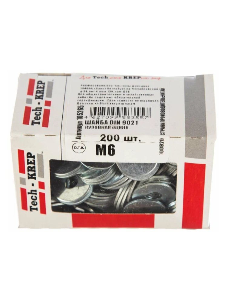 Шайба кузовная оцинкованная М6 по стандарту DIN 9021 от бренда Tech-Krep представляет собой высококачественный крепежный элемент, предназначенный для увеличения площади опоры при соединении деталей. Изготовлена из прочной стали с цинковым покрытием, что обеспечивает надежную защоловку от коррозии даже в условиях повышенной влажности. Диаметр внутренней резьбы составляет 6 мм, что делает изделие универсальным для использования с соответствующими болтами и винтами. Упаковка содержит 200 штук, что удобно для крупных строительных или ремонтных проектов. Коробка с окном позволяет легко контролировать количество оставшихся шайб.