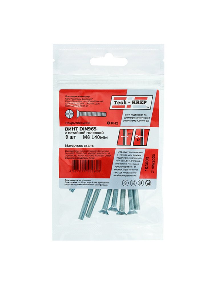 Винты с потайной головкой оцинкованные М6х40 подходят для крепления металлических, деревянных и пластиковых конструкций, гарантируя прочное и долговечное соединение. Оцинкованное покрытие защищает от коррозии, обеспечивая надежность даже во влажных условиях эксплуатации.