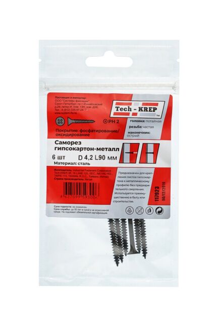 Саморез по дереву 4,2х90 (6 шт) - пакет Tech-Krep в Переяславка