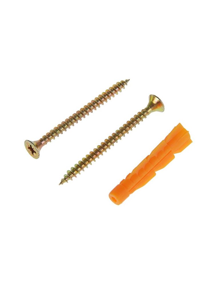 - Комплект: 6 саморезов 6,0×80 мм с потайной головкой и 6 универсальных дюбелей 10×61 мм