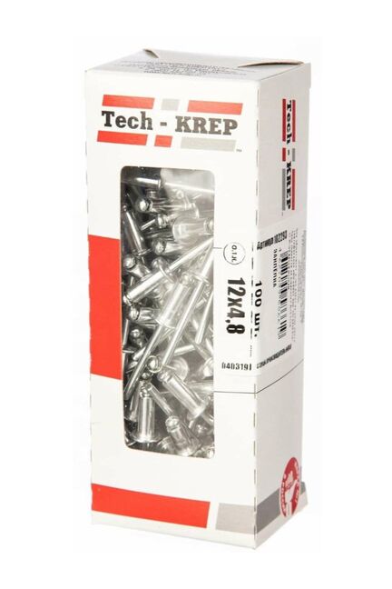 Заклепка 4,8х12 мм в упаковке 100 штук от Tech-Krep – это надежное крепежное изделие, предназначенное для создания неразъемных соединений различных материалов. Изготовлена из высококачественного алюминия и стали с оцинкованным покрытием, что обеспечивает устойчивость к коррозии и долговечность. Диаметр заклепки 4,8 мм и длина 12 мм подходят для скрепления листовых материалов толщиной до 8 мм. Упаковка в виде коробки с окном позволяет легко оценить содержимое и удобно хранить крепеж. Монтаж производится с помощью заклепочного инструмента, что гарантирует быстроту и прочность соединения.