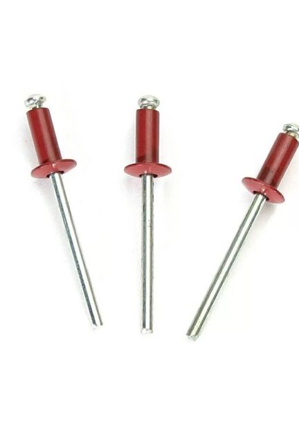 Заклепки алюминий-сталь используются: для неразъёмного соединения листового металла, крепления различных деталей к металлическим конструкциям методом сквозного монтажа. Состоит из распорной втулки и стержня с увеличенным шарообразным концом. Комбинированная заклепка 4,8×10 мм с алюминиевым корпусом и стальным стержнем в винно-красном цвете. Идеальна для прочного соединения и отделки.