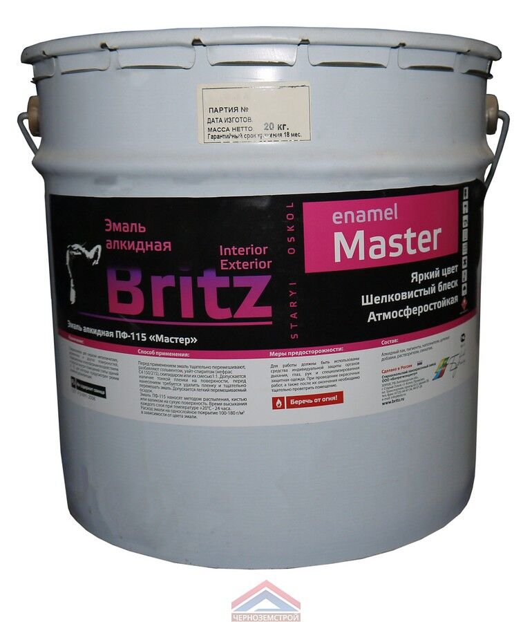 Алкидная эмаль для дерева и металла, устойчива к истиранию и погоде, быстро сохнет и надолго сохраняет яркий цвет, объем 20 кг.
