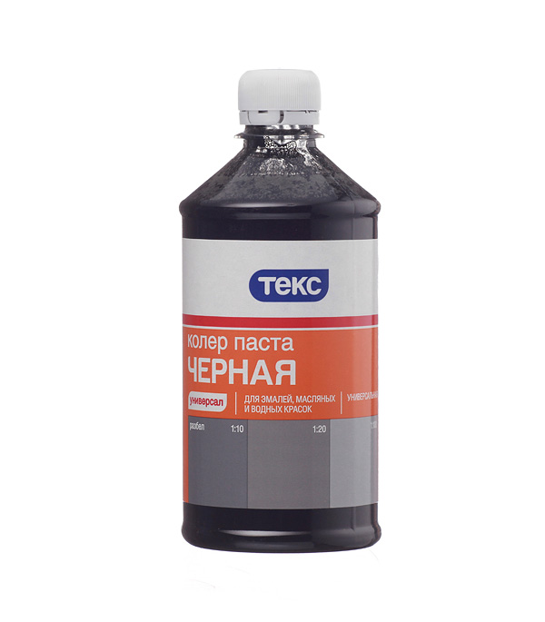 Колеровочная паста универсальная для эмалей, масляных и водно-дисперсионных красок. Для колеровки фасадных красок рекомендуется использовать только колер пасты: Кофейная №10, Бежевая №15, Карамель №22, Охра №09 . Не рекомендуется использовать для колеровки известковых и силикатных красок. Колер паста не используется в чистом виде. Черный универсальный колер 0,5 л: насыщенный стойкий пигмент для колерования водоэмульсионных и акриловых красок, экономичный расход.