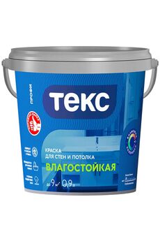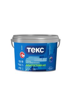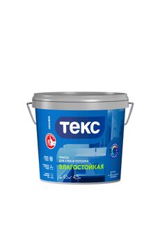 ТЕКС Влагостойкая матовая краска, устойчива к мытью, быстро сохнет, без запаха, для стен и потолков, для влажных помещениях.