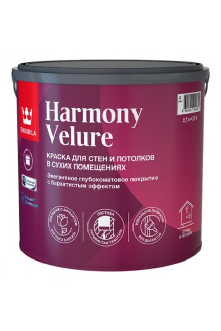 Матовая интерьерная краска 2,7 л: ровное покрытие, износостойкость, быстрый набор прочности и экологичная формула, для дома.