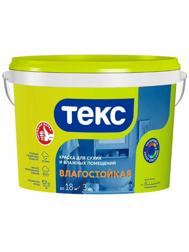 Идеальный выбор для создания надежного влагостойкого покрытия в ванных комнатах, кухнях и других помещениях с повышенной влажностью! Водно-дисперсионная краска обладает матовой текстурой, равномерно ложится на поверхность, скрывая мелкие дефекты и создавая эстетичный результат даже на сложных основаниях.