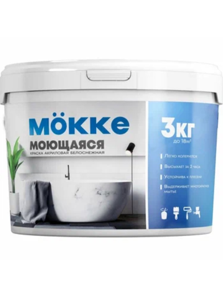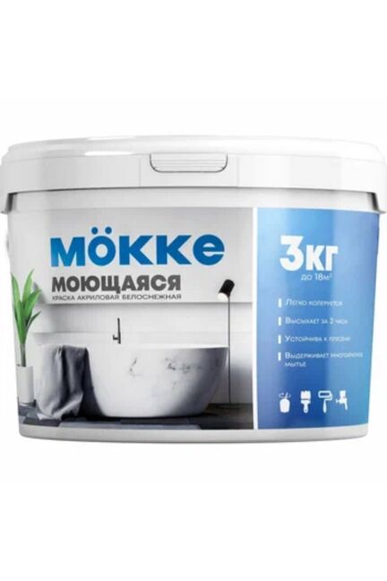Краска ВД моющаяся б/снеж. 3кг акрил. MOKKE в Переяславка