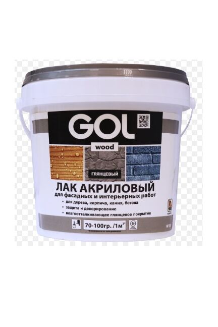 Лак акриловый GOL глянцевый 0,9л для внутр.работ в Переяславка