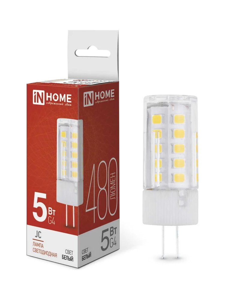 Оцените высокую энергоэффективность и компактность: светодиодная мини-лампа мощностью 5 Вт с цоколем G4 отлично подходит для декоративной и акцентной подсветки, освещения витрин, гардеробных, кухонь и мебели. Идеальный вариант для низковольтных осветительных систем, встраиваемых и точечных светильников.