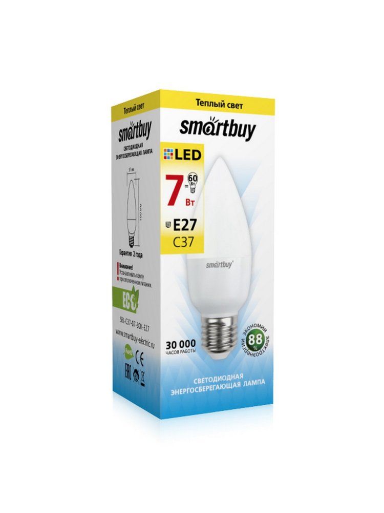 Лампа светодиодная LED-C37 07Вт-3000K-E27 Smartbuy