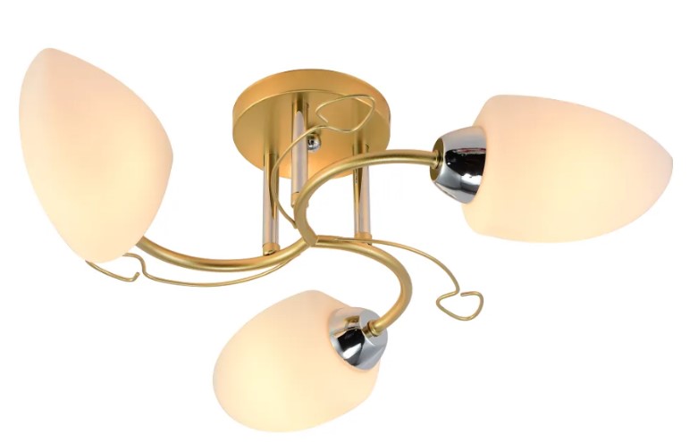 Размеры: (Д*Ш*В) Ø520*170 мм Элегантная люстра на 3 лампы E14, мощность до 60Вт, стильное золотое покрытие, легкий монтаж и универсальность для любого интерьера.