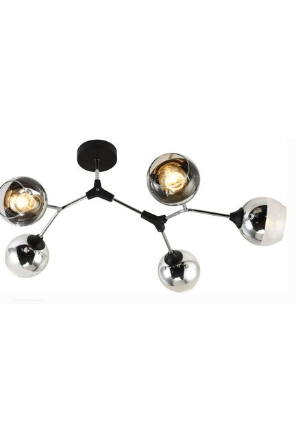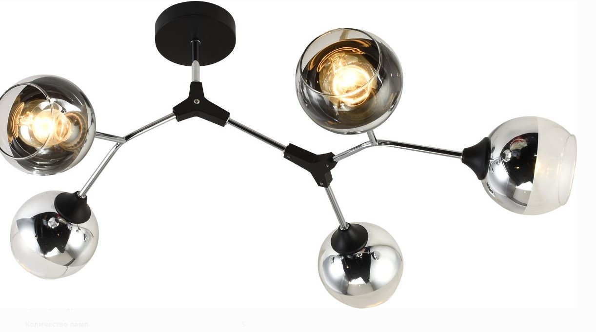 Стильная люстра на 5 ламп E27, черно-хромовое исполнение, совместимость с LED и энергосберегающими лампами, подходит для разных интерьеров.