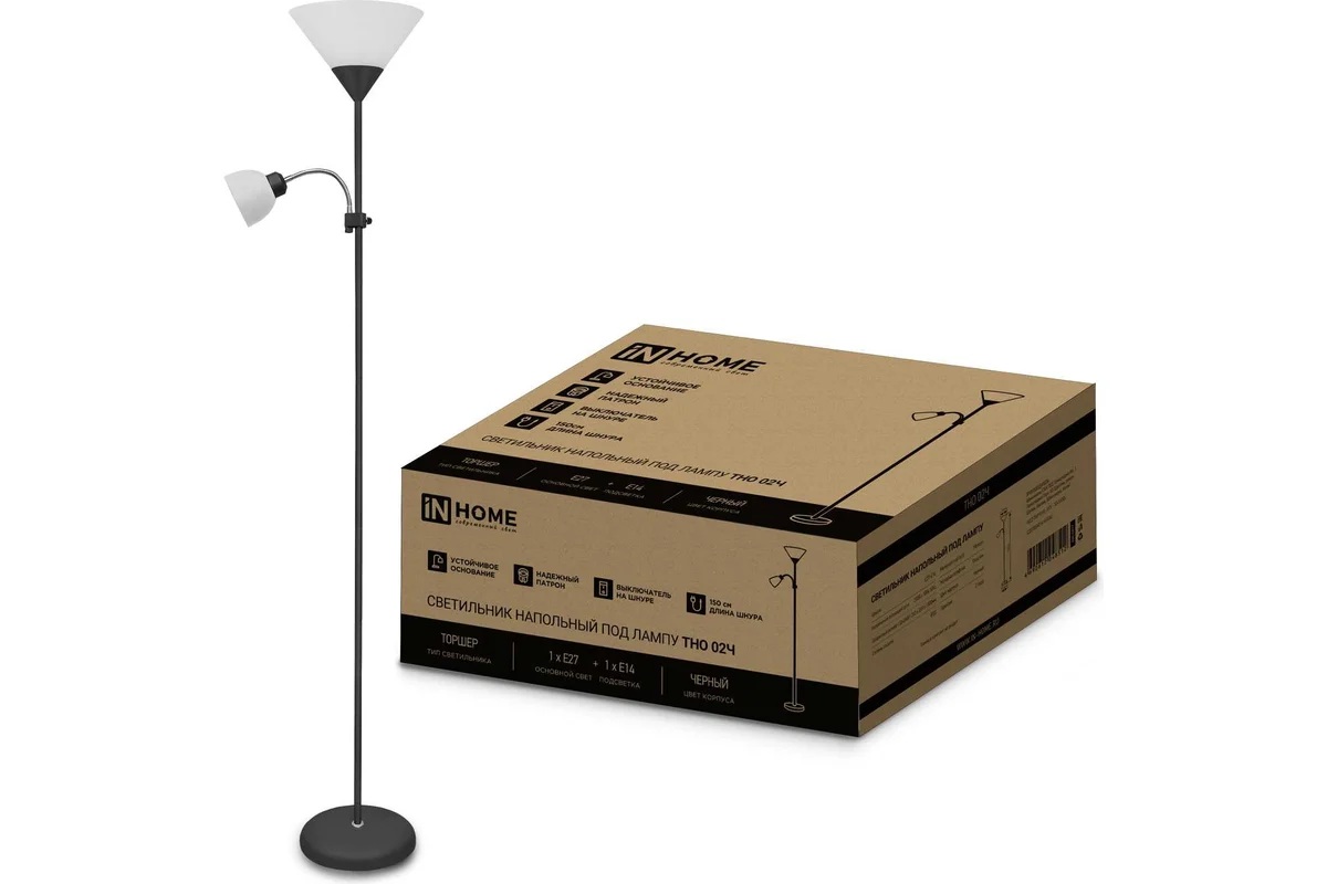 Светильник напольный под 2 лампы Е27+Е14 ТНО-02 белый/черный IN HOME в Переяславка