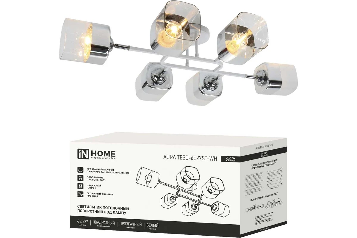Светильник потолочный под 6 ламп Е27 AURA TESO поворотный белый/прозрачный IN HOME в Переяславка