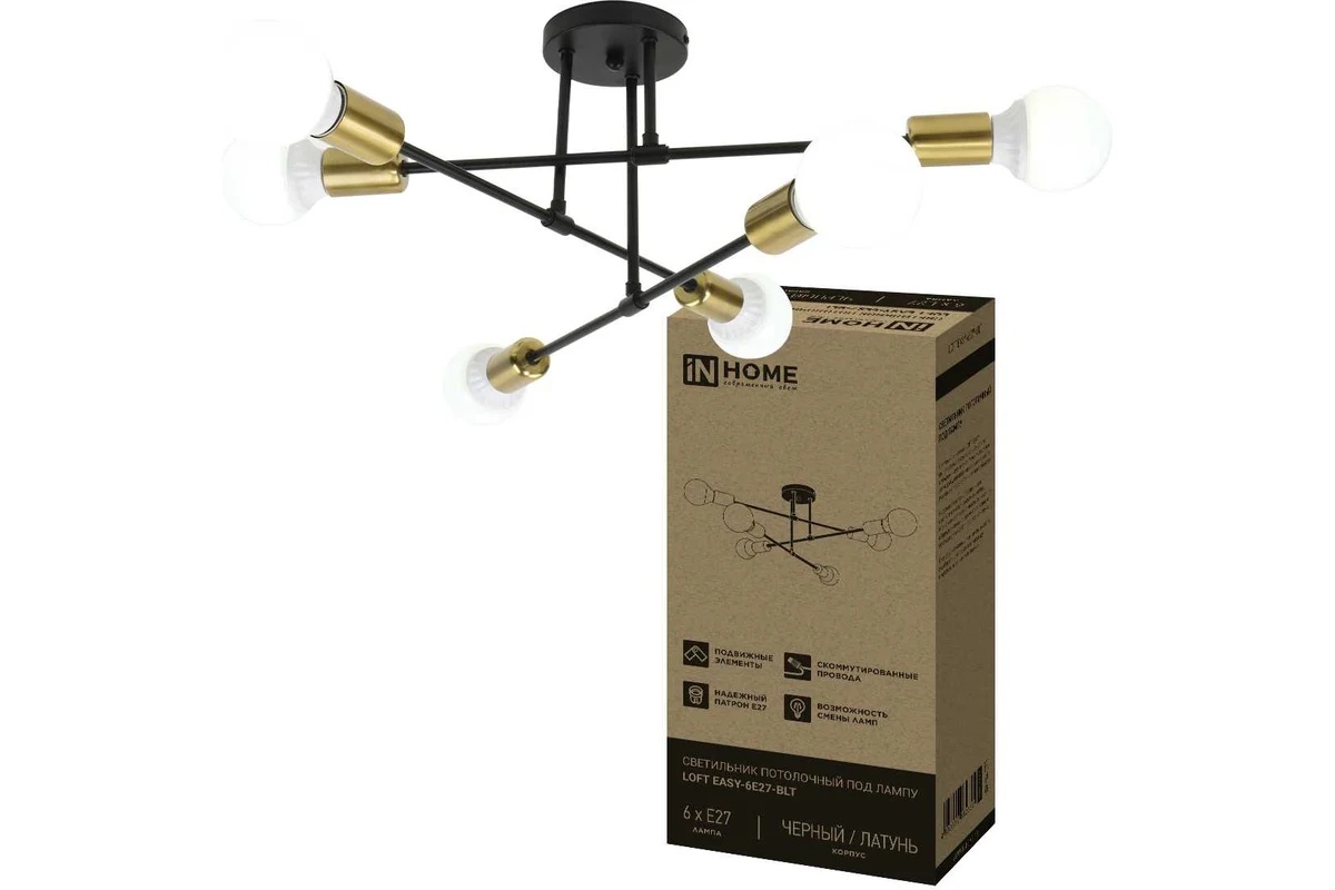 Светильник потолочный под 6 ламп Е27 LOFT EASY черный/латунь IN HOME в Переяславка