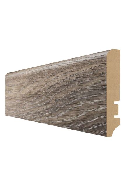 Элегантное и практичное решение для оформления стыков пола и стены, идеально подходящее для жилых и коммерческих помещений любых стилей. МДФ-плинтус с декором «Дуб Серый» не только завершит отделку интерьера, но и обеспечит аккуратность, защиту стен, а также скрытие проводов.