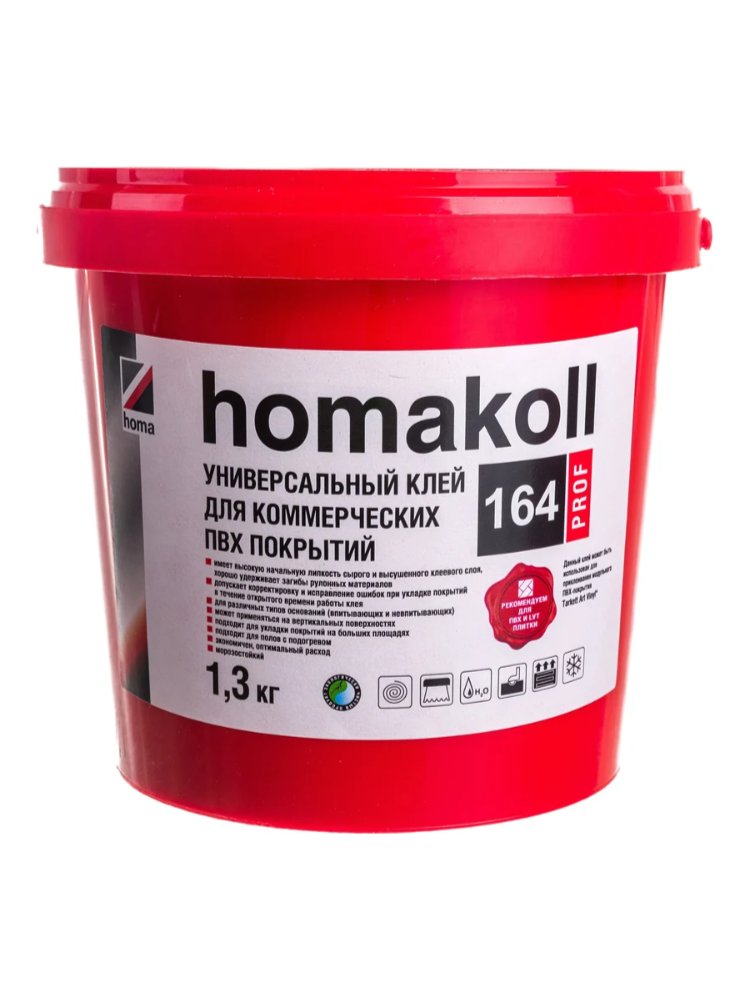 Максимально прочное и долговечное крепление напольных коммерческих ПВХ покрытий – это легко с современным универсальным клеем профессионального класса! Подходит для монтажа гомогенных и гетерогенных ПВХ, виниловых плиток и ламината в помещениях с высокой проходимостью: офисах, торговых центрах, образовательных и медицинских учреждениях.
