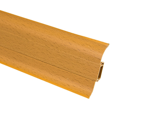 Утонченный и высокий профиль (58 мм) с острыми краями. Благодаря съёмной панели монтаж электрических проводов, покраска стен, оклеивание обоями возможны без демонтажа профилей. Конструкция позволяет монтировать и демонтировать плинтус без использования инструментов. Существует возможность размещения большого количества проводов, в том числе после монтажа. Специальная двухслойная технология: помимо слоя краски, дополнительно покрывается специальным лаком, благодаря чему его покрытие становится однородным, а это дополнительно защищает изделие от разного вида механических повреждений и вредного воздействия лучей УФ. Благодаря эластичному материалу, плинтус идеально прилегает даже к неровностям стен и полов.