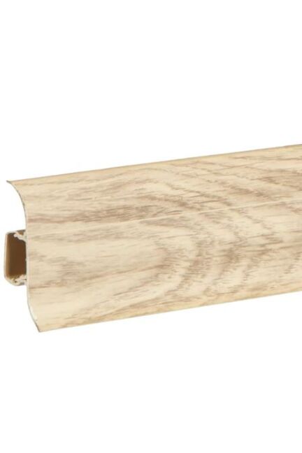 Утонченный и высокий профиль (58 мм) с острыми краями. Благодаря съёмной панели монтаж электрических проводов, покраска стен, оклеивание обоями возможны без демонтажа профилей. Конструкция позволяет монтировать и демонтировать плинтус без использования инструментов. Существует возможность размещения большого количества проводов, в том числе после монтажа. Специальная двухслойная технология: помимо слоя краски, дополнительно покрывается специальным лаком, благодаря чему его покрытие становится однородным, а это дополнительно защищает изделие от разного вида механических повреждений и вредного воздействия лучей УФ. Благодаря эластичному материалу, плинтус идеально прилегает даже к неровностям стен и полов. Легкий монтаж, прочный ПВХ, идеально скрывает стыки плинтуса высотой 58 мм, цвет дуб северный, 2 штуки в комплекте для аккуратной отделки.