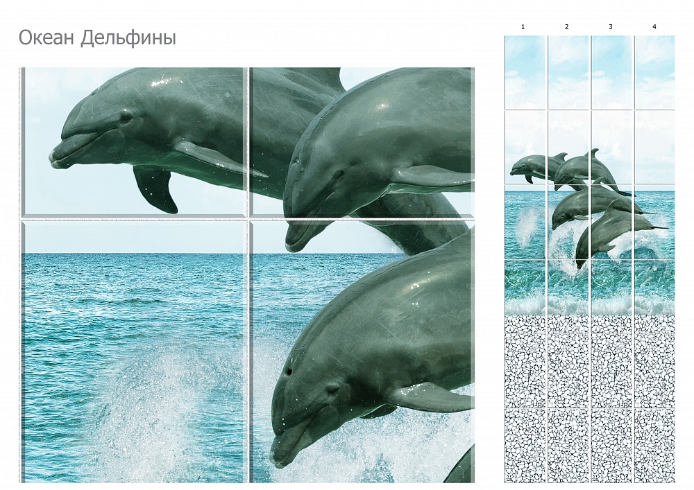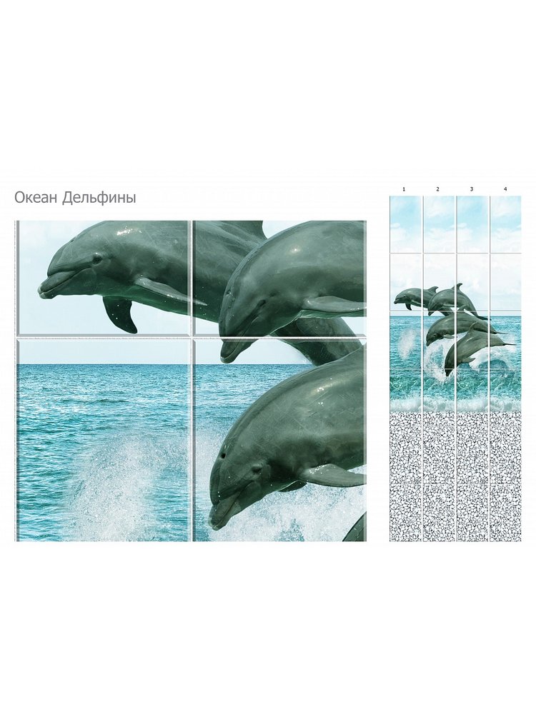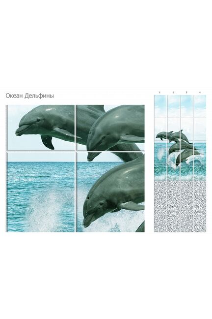 Панель ПВХ 2,7*0,25 Океан Дельфины Панно (4шт) узор UNIQUE в Переяславка