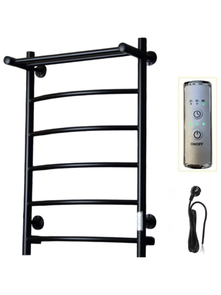 Стильный черный водяной полотенцесушитель 800×500 мм, эффективный обогрев, 5 перекладин, современный дизайн и простота монтажа для вашей ванной.