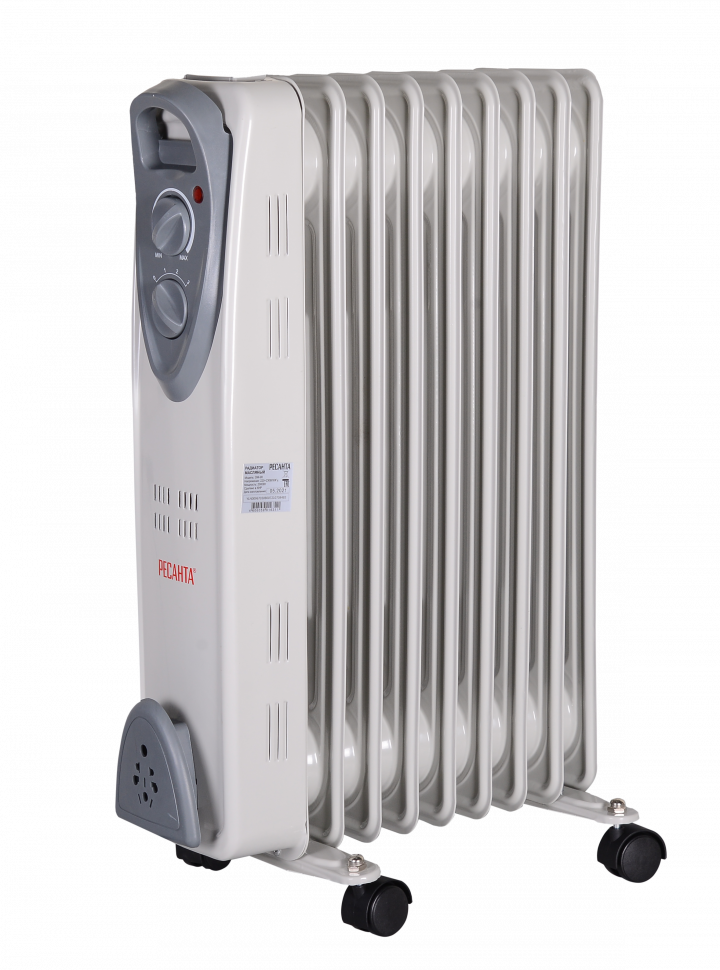 Масляный радиатор Ресанта ОМ-9Н выполнен в белом цвете, а значит, подойдет для установки практически в любом интерьере. Он состоит из 9 секций и обладает мощностью в 2000 Вт, что предполагает эффективный обогрев помещения площадью до 20 м². Наличие колесиков и удобной ручки обеспечивают легкое перемещение радиатора в любое место. А световой индикатор оповещает о рабочем состоянии электроприбора. Подключается радиатор к электросети с помощью сетевого шнура, который при необходимости убирается в специальный отсек. Масляный радиатор Ресанта ОМ-9Н оснащен поворотным регулятором мощности нагрева, с помощью которого можно выбрать оптимальный вариант из 3 представленных. Кроме того, в радиаторе предусмотрен термостат (тоже с поворотной ручкой), благодаря чему устанавливается необходимая температура нагрева. Эффективный радиатор 2000 Вт с термостатом, 9 секциями и защитой от перегрева для надёжного обогрева помещений до 20 м².