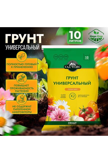 Готовый универсальный грунт 10 л для рассады и цветов, сохраняет влагу, укрепляет корни и ускоряет рост растений в любой сезон.