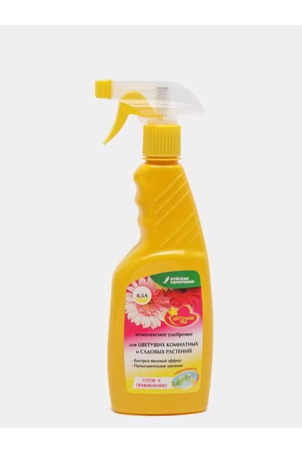 Жидкое удобрение-спрей для подкормки и стимуляции цветения комнатных и садовых растений. Объем 0,5 л. Быстро действует, легко наносится.