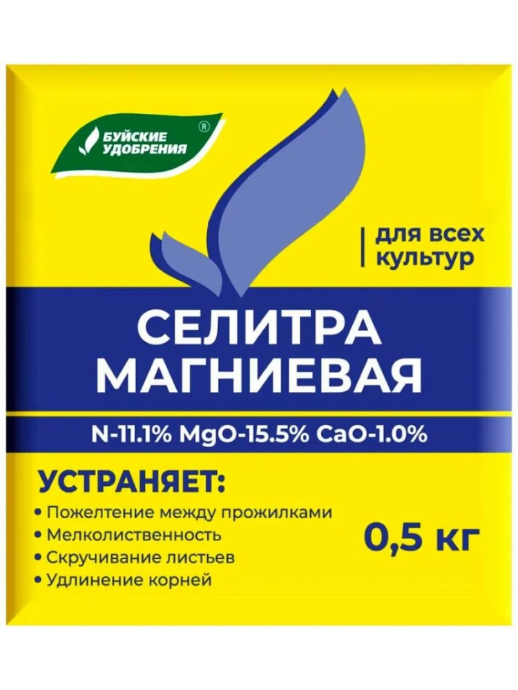 Обеспечьте растениям полноценное питание! Магниевая селитра 0,5 кг идеально подходит для подкормки сельскохозяйственных и декоративных культур на всех типах почв, повышая урожайность и устойчивость к стрессам.