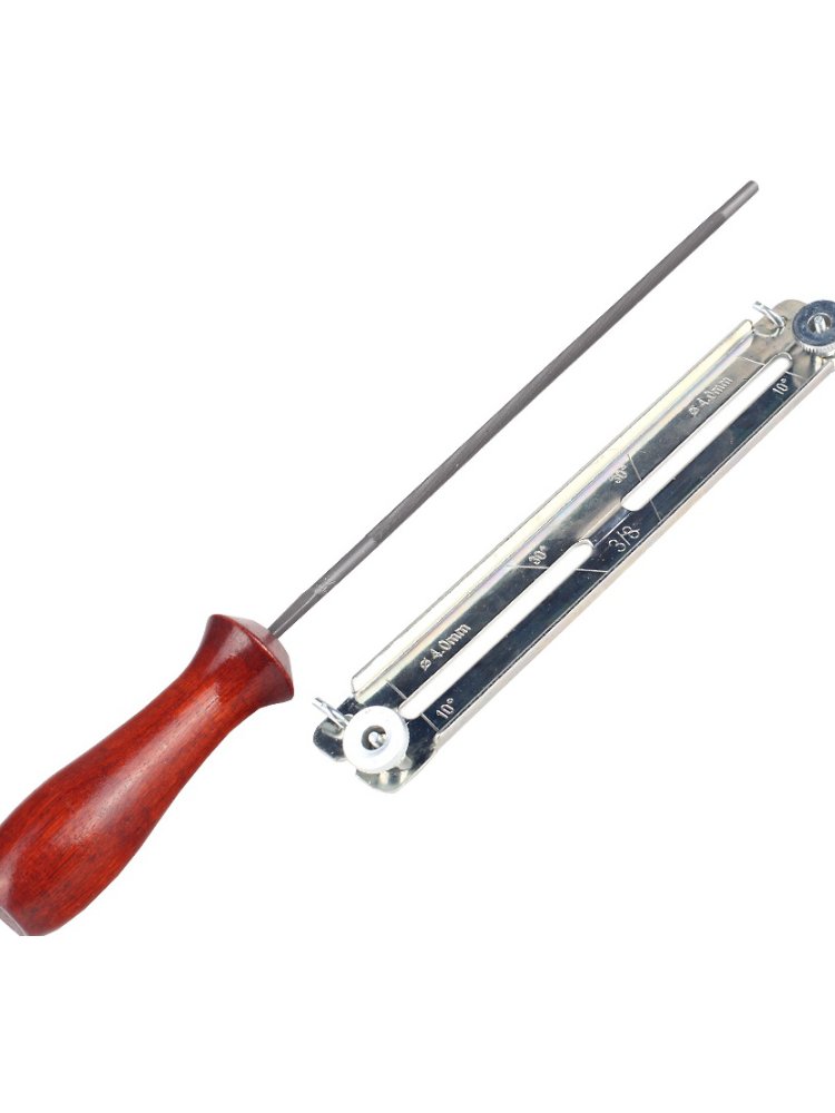 Обойма с напильником PATRIOT PG-FG4.0 используется как приспособление для заточки всех типов цепей бензопил с шагом 3/8". Он позволяет легко и быстро затачивать цепь под нужным углом и глубиной. Также его можно применять для очищения паза направляющей шины от грязи и опилок. Удобная рукоятка, идущая в комплекте, обеспечивает быструю и правильную заточку без лишних усилий. Комплект очень удобен, занимает мало места, позволяя держать все необходимое для качественной работы пилы всегда под рукой. Универсальная державка для напильников 4,0 мм — надежная фиксация, простая установка, комфортная работа при заточке цепей и деталей.