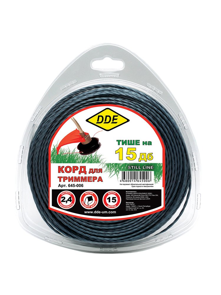 Корд триммерный DDE "Still line" витой квадрат, 2,4*15м,голубой в Переяславка