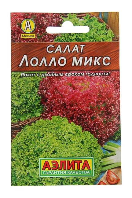 - Смесь сортов: "Лолло Росса" и "Лолло Бионда", красивый микс зелёных и красных салатов.