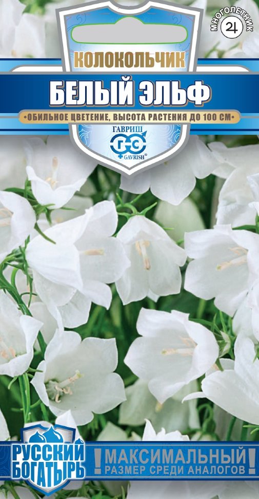 Семена цветов Колокольчик Белый Эльф, персиколистный 0,1гр. Гавриш в Переяславка