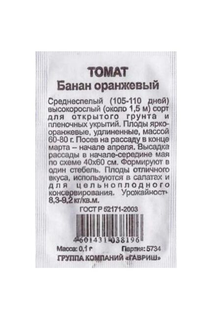 Семена Томат Банан оранжевый б/п Гавриш в Переяславка