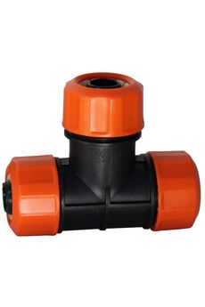 Цанговый тройник для труб 1/2" и 3/4", легко монтируется без инструментов, обеспечивает герметичность, подходит для систем полива и водоснабжения.