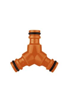 Удобный тройник-распределитель для шлангов с тремя штуцерами, прочный пластик, герметичные соединения, оптимален для систем полива и водоснабжения.