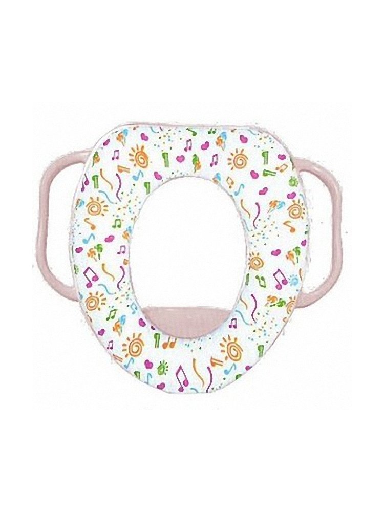 Оно может либо крепиться поверх большого круга, либо прижиматься им. Оснащаеться боковыми ручками, за которые ребенку будет удобно держаться. Детское сиденье для унитаза с розовыми ручками, подходит для малышей, не скользит, легко чистится, обеспечивает комфорт и безопасность.