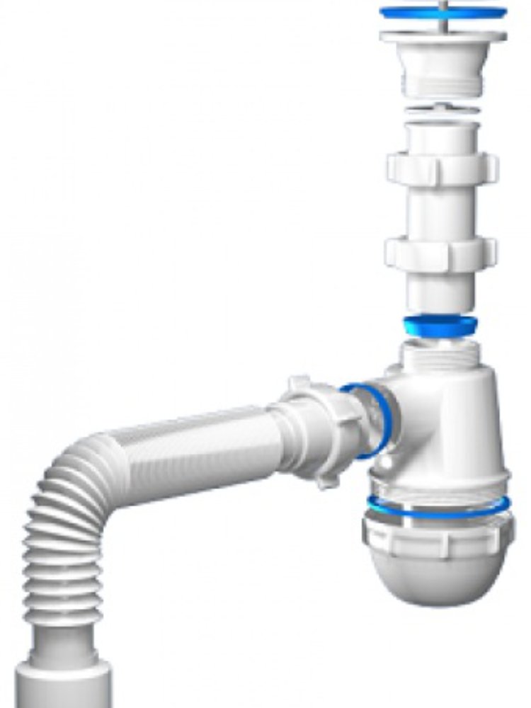 - Комплектация: сифон, гибкая труба, нержавеющий выпуск, прокладки и все необходимые элементы для сборки