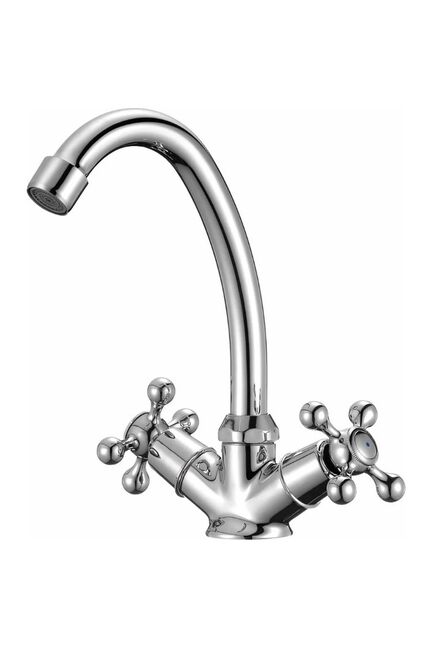 Двуручный смеситель из латуни с хромированным покрытием для умывальника, точная регулировка, простой монтаж, долговечная и стильная модель.
