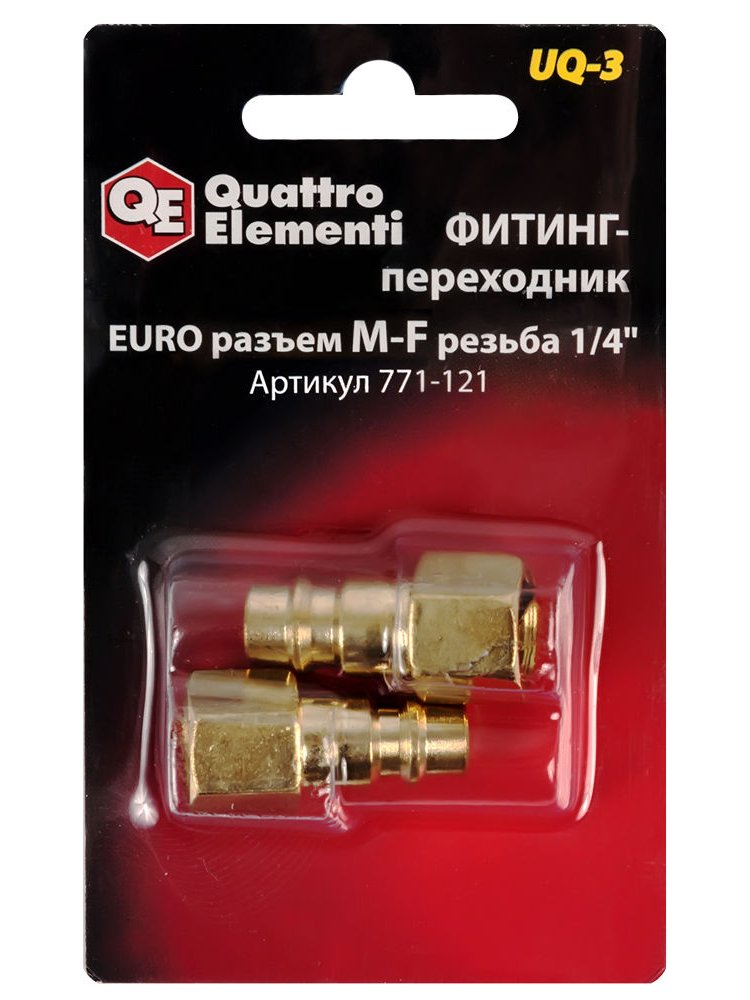 Фитинг-переходник UQ-3 Quattro Elementi - комплект из 2-х принадлежностей для компрессорного оборудования. Переходники используются для подсоединения к компрессору шланга с необходимым пневмоинструментом. Имеют соединение папа EURO - мама резьба 1/4 ". Обеспечивают надежное крепление инструмента. Переходник-фитинг EURO 1/4" (мама), 2 шт. — для быстрого и герметичного соединения пневмоинструмента и компрессоров.
