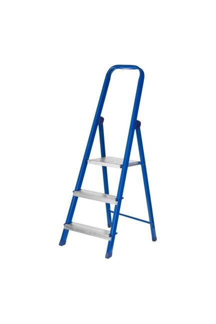 Стремянка используется для бытовых и ремонтных работ. Стремянка выполнена из прямоугольного профиля и окрашена синей полимерной краской для защиты от коррозии. Модель рассчитана на высокую нагрузку, обеспечивает хорошую устойчивость как всей конструкции, так и каждой ступеньки по отдельности. Ступени выполнены из алюминия, имеют специальное рифление, что снижает вероятность скольжения во время работы. Прочный страховочный ремень предотвращает выход стремянки из рабочего положения, что обеспечивает безопасную работу на верхних ступенях. Прочная трёхступенчатая стальная стремянка, высота 60 см, выдерживает до 120 кг, устойчива и компактна для дома и ремонта.